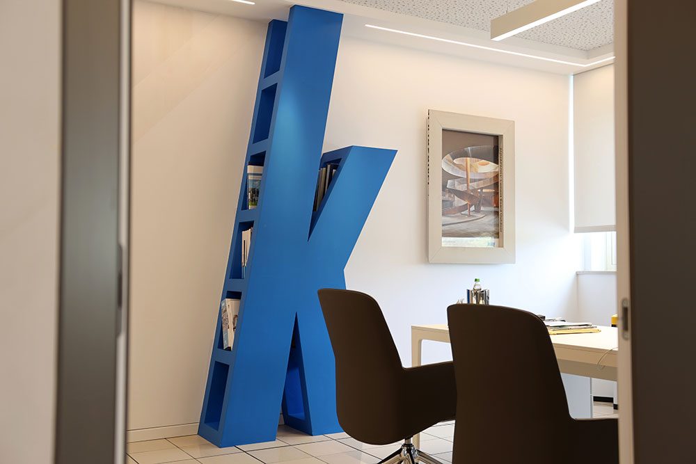 Il progetto Knauf possiamo definirlo ancora in divenire. Ci hanno contattato per riformulare e arredare gli uffici della sede Italiana. La Knauf è un’azienda internazionale, in continua evoluzione e, dai colloqui con il personale e con i dirigenti, abbiamo subito percepito che dovevamo affrontare il progetto predisponendo già eventuali spostamenti/integrazioni e modifiche future. Proprio con questi presupposti la selezione degli arredi è stata fondamentale, per coniugare la scelta stilistica e quella funzionale. Il prodotto ottimale per questo progetto è stato il Be1 di Frezza, un sistema operativo/semidirezionale che permette infinite possibilità compositive. Con la stessa linea, infatti, abbiamo arredato uffici dei responsabili con postazioni semidirezionali e uffici operativi con postazioni multiple, isole per team e open space.