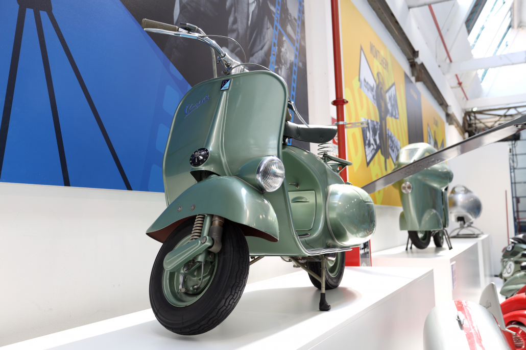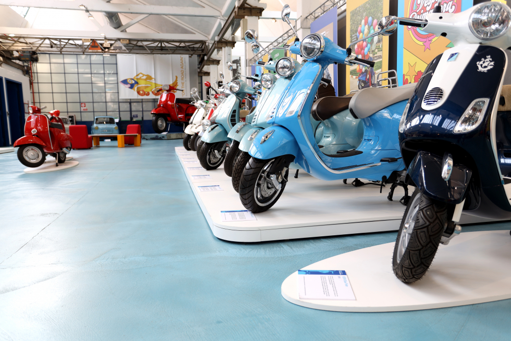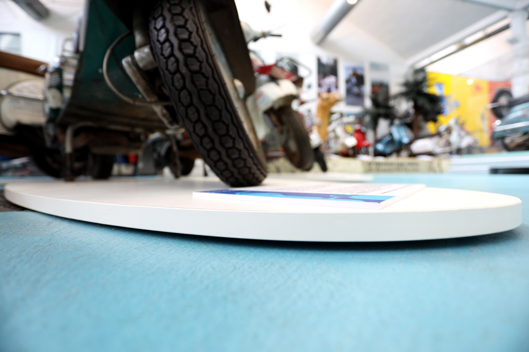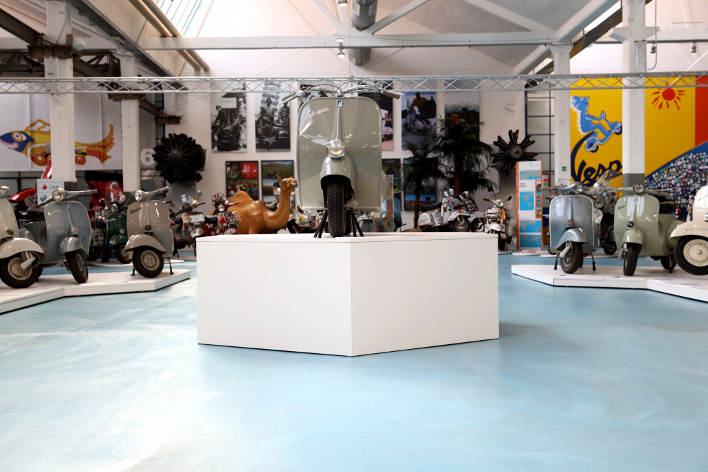 È nata una collaborazione con lo studio tecnico della Piaggio e la falegnameria Parenti Arredamenti per la realizzazione delle pedane espositive del Museo Piaggio nell’area dedicata alla Vespa disegnata da Corradino d’Ascanio: una moto rivoluzionaria, economica e facile da guidare.