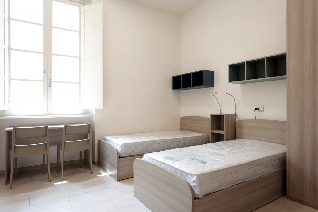 Gli alloggi del personale militare della Caserma sono stati realizzati con la linea Golf di Colombini, nelle finiture chiare. Le camere da 2, 3 o 4 posti dovevano prevedere letti singoli, armadi, mensole, scrittoi e sedute, il tutto coordinato e con qualche elemento colorato per rendere gli alloggi accoglienti, moderni e funzionali.