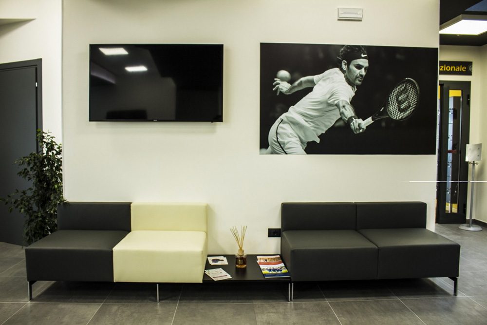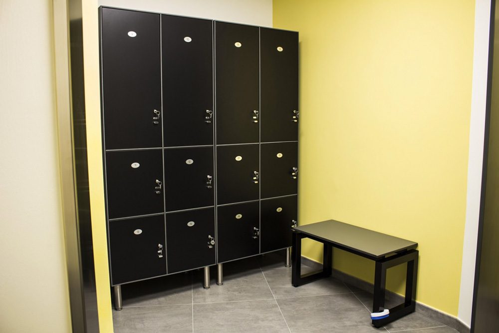 Per gli spogliatoi ci siamo affidati alla ditta Sinko specializzata in materiale HPL e abbiamo fornito armadietti, casellari e panche spogliatoio. Il tutto completato dai tendaggi di Mottura sia per le veneziane nella zona palestra che le eleganti tende a rullo degli ambulatori.