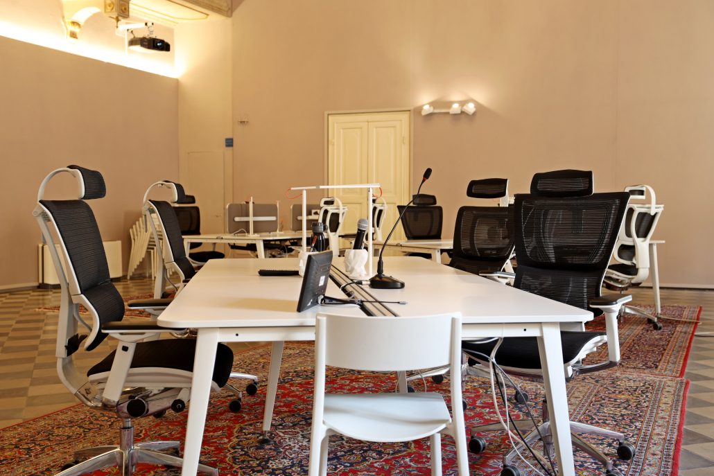 La finitura scelta Total White ha creato poi il giusto contrasto tra le postazioni tecnico-ergonomiche e l’edificio storico con i suoi bellissimi e preziosi elementi artistici come i pavimenti, i soffitti decorati e il bellissimo lampadario in cristallo del salone.